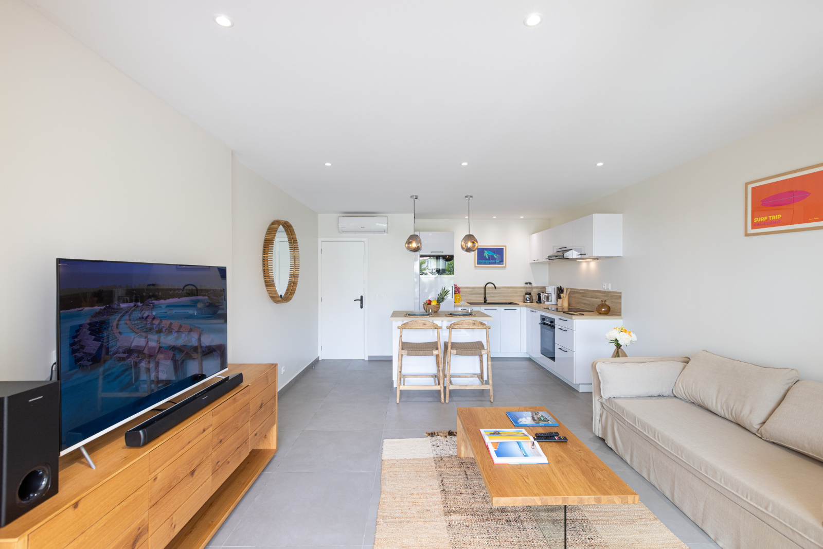 Plages, restaurants et boutiques, vous pouvez tout faire à pied.Tout est neuf et ce condo est équipé d'une citerne.